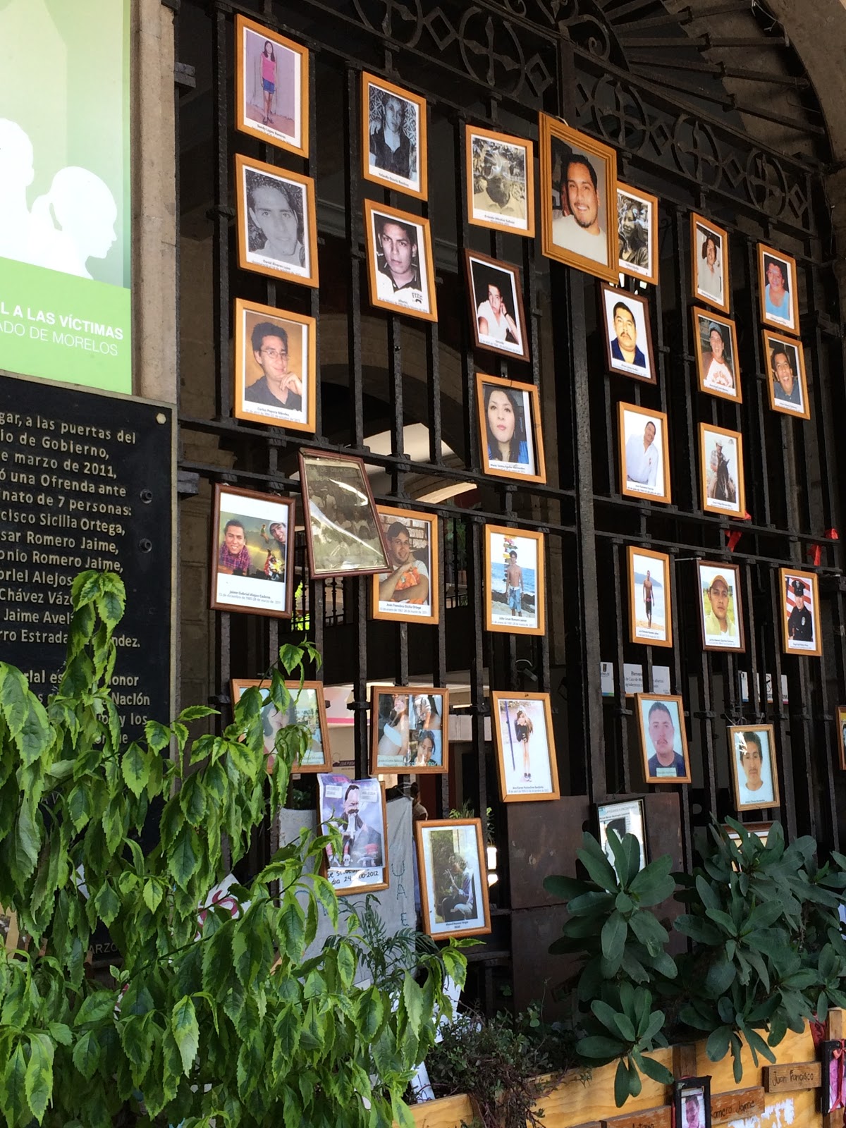 Let me begin by saying that I do feel safe in general. I feel that my family has a secure home. My school has the resources to help me with most any situation that might occur. I’m not in danger. What I’m finding, though, is that the reality of life in Cuernavaca is that no one feels safe. Homes are locked. Our school has a guard and even the grocery store has an armed guard at all entrances. Today, our tour guide, a Cuernavaca resident for more than 40 years, would not give us his opinion about the recent disappearance and murder of 7 Cuernavacan men and women. As it turns out, we were standing in front of a government building and he was not comfortable talking about it in public. There are public displays of photos and mementos on the city square dedicated to the victims. It’s a fresh reminder that there are still places in the world where people go missing or are killed because of their political views or their ties to a particular group or family.