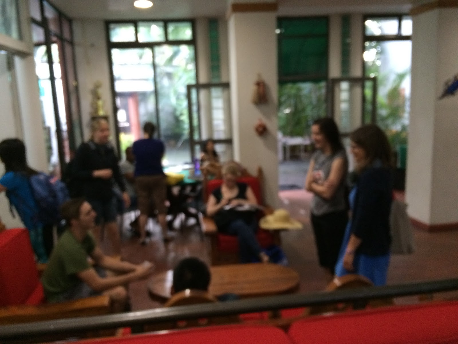 School was fun today. My class is challenging and we are all at the same language level. It’s really great to be with like minds who have linguistic questions like I do. We have gotten off topic many times when discussing a very obscure grammar rule or two, but it’s cool to be with students who are pushing my language knowledge to the highest level it’s been at since college. Here is a picture taken at our school during break time today.