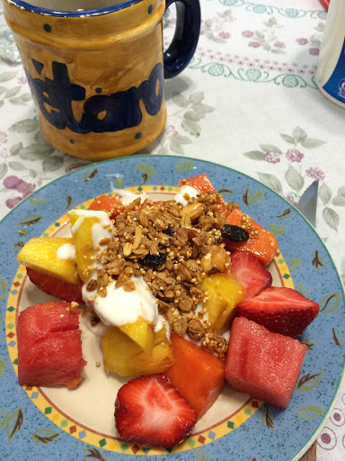 I enjoyed another beautiful day in Mexico today. The day started with a delicious fruit salad topped with plain yogurt and granola. The salad included watermelon, papaya, mango, pineapple and strawberry. Fresh and healthy!