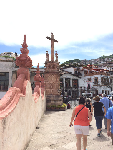 The afternoon was spent on an excursion to the city of Taxco which is in the Mexican state of Guerrero. Guerrero is considered to be one of the most violent states in Mexico right now. US citizens are being advised to avoid it due to the high number of murders and kidnappings. Unfortunately, Guerrero happens to be where one of the moist quaint colonial towns in Mexico is located. It is the silver mining town known as Taxco and it is precious! I was there in 1991 and remember it as one of the prettiest places I’d ever seen. The gorgeous Santa Prisca Church is the centerpiece around which the town is built. The streets are windy and small (even curvier and narrower than San Francisco). It is a jewelry collector’s paradise. Store after store of silver pieces line the sidewalks. Most of my friends found gifts and personal items, but I preferred to observe. I just didn’t see anything that I couldn’t live without. It was fun just to be there. Taxco is surrounded by the Sierra Madre mountain range and resembles a beautiful Italian or Grecian hillside community. Just like in Cuernavaca, we seemed to be the only US tourists there. We northerners are terrified of Mexico and it has really hurt the economy that so few of us are visiting. The shop owners and street vendors were desperate for our business. They would grab us on the street, follow us from store to store and even try and bribe us with free Mezcal shots and cold bottles of beer.