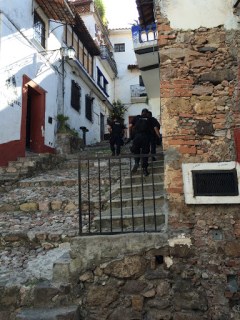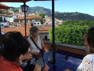 At the end of our time in Taxco, we happened upon a little restaurant with an upstairs balcony. We ordered a pitcher of clericot and shared a toast to the little town of Taxco. With all of its apparent problems, it is still a neat place to visit. We took some selfies and I also had a photo taken of me with my new “sole” sister. We both have the same Keen shoes which is crazy because they aren’t sold in many stores. They are the best shoes for trips like this!
