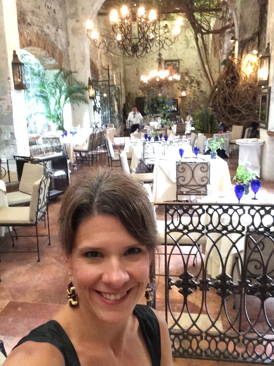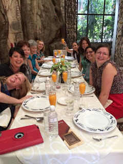 Tonight, we ventured to the Hacienda de Cortes Spa and Hotel for our final dinner. Gorgeous doesn’t begin to capture the beauty and essence of this historical treasure. Once the sugar plantation of Hernan Cortes, this land and its buildings exist today as a lush tropical retreat for international travelers. We took a tour of the grounds and then sat down to a very elegant dinner. The pictures speak for themselves. I enjoyed each and every thing I ordered tonight. First, I enjoyed a glass of dry white wine. For some reason, when you ask them here what types of white wine they have, they simply give you the name of the vineyard, but not the type of the wine. I asked if they had pinot grigio or sauvignon blanc and our waiter thought I was nuts. I went with the vibe and chose a vino blanco from the list. It was probably a sauvignon blanc and it was fine with me. Just a weird thing that we’ve noticed in several restaurants here. For an appetizer, I had ceviche a la veracruzana. This is delicious raw seafood marinated in lime juice and then served in a cold tomato broth. It was fabulous! We were served complimentary champagne mango cocktails which were “out of this world!” They came with chili and lime seasoning on the rim of the glass. For my entree, I chose chicken breast stuffed with squash blossoms and cheese with green chili verde on top. Again, quite fabulous! There was no room for desserts, plus you know how I feel about Mexico and its inability to figure out desserts. We had a lovely “graduation” ceremony in one of the beautiful courtyard areas and then we ventured home amidst many hugs and tears. It’s amazing how close you can get in just a short period of time. Thanks to email and social media, I believe we will remain in close contact for many years to come. Great, strong women! What a blessing it has been to know them!