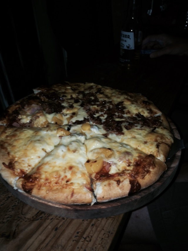 We searched high and low for a safe taxi. Finally, after negotiating a rate of 80 pesos (a little over $5), we got a ride home to our hotel. We rested for about an hour and then joined other hotel guests for happy hour. Finally, we made our way out to dinner. We ate at a very hip little pizza place called Pizza del Perro Negro. It truly hit the spot after a day of walking more than 7 miles! I scarfed down half of a tropical deep dish pizza (ham, bacon and peaches) and a Corona! We walked back to the hotel, stopping for a Coke Light along the way. Tomorrow is an early start as we head to Teotihuacan for pyramid climbing. Wish us luck!