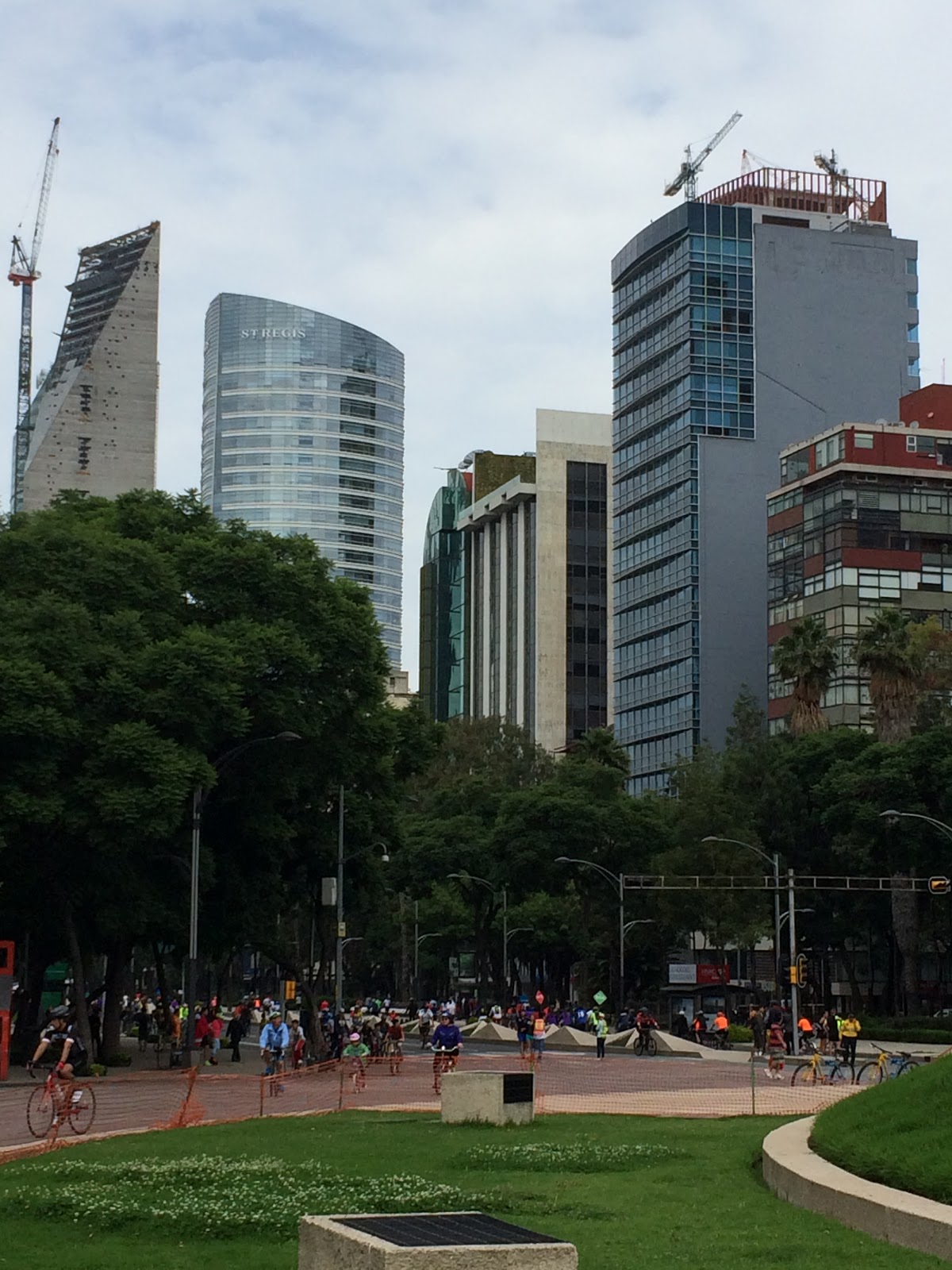 This city is incredible! When I visited in 1991, it was a smog-filled, congested place. Fast forward 24 years and THIS IS THE PLACE TO BE! While I know that there are some issues here in Mexico what with the murders and narcotrafficking and all, but Mexico City (referred to here by everyone as the DF) is truly a cosmopolitan city that offers something for everyone. The green movement here is strong as evidenced by the weekly closing on Sunday mornings of the city’s longest and largest avenue, the Paseo de la Reforma. Thousands of people come out to enjoy this weekly event. It was just one of the things that we did today. Here’s a brief recap of our first full day in the DF, the 11th largest metropolitan area in the world!