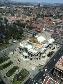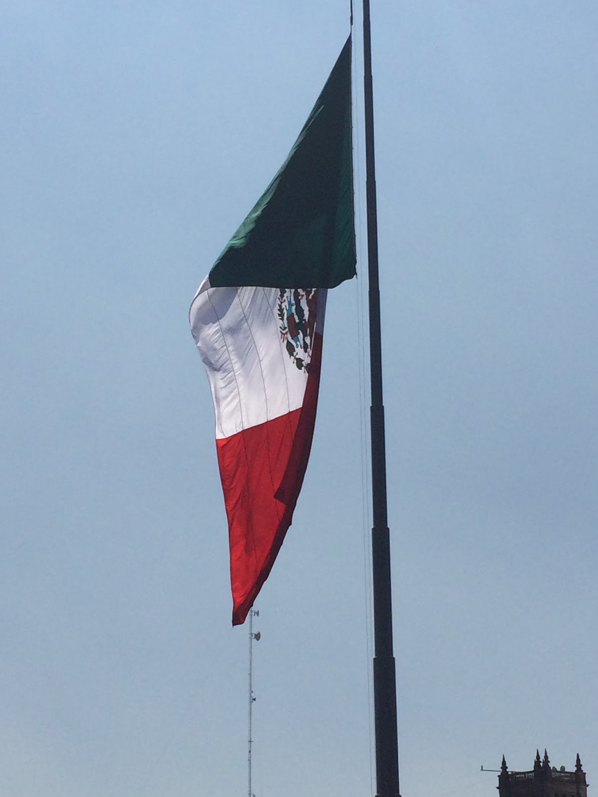 After the murals, we walked through the Zocalo. The baseball diamond from Sunday was completely gone. The huge Mexican flag was back in its place (it really bothered me not to see it there on Sunday). We took some panoramic shots and then made our way to the Torre Latinoamerica.