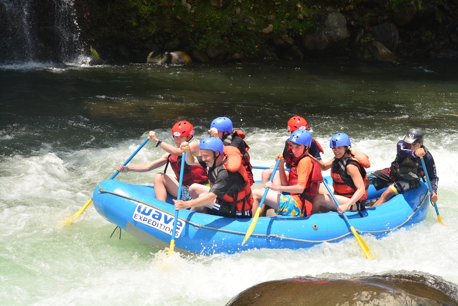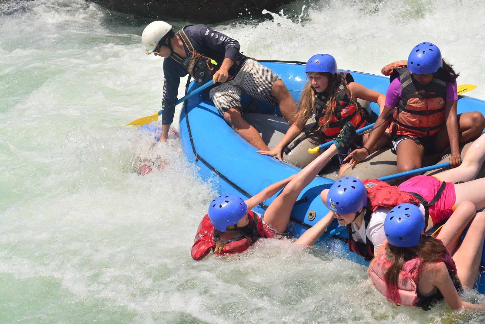 In the raft with all blue helmets: