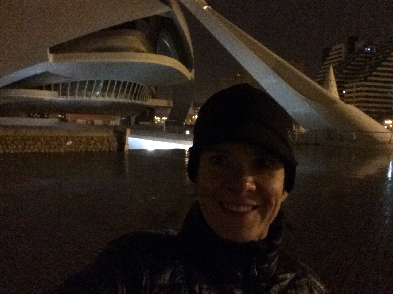 Today’s blog post will be fairly short as today was mainly a work day.  I woke up after four hours of sleep and decided to go out in the rain for a nice long walk. I made my way all the way to the City of Arts and Sciences and back which is about four miles.  Keep in mind that it was pitch black and raining the entire time. With all of the eating and drinking here in Spain, it felt good to get out and move! I took a couple of pictures in the dark. It was strangely quiet as the sun doesn’t even make an appearance here until about 8am. Spain is a late night culture. I’m sure the cars that passed me thought I was heading home after a long night of dancing!