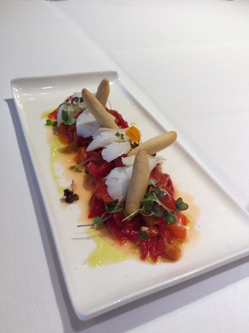 We listened to ten Spanish language school presentations and then we had a paella cooking demonstration. Paella comes from Valencia because the rice that is used to make paella comes from this area exclusively. After having cocktails, we were seated for our traditional paella lunch. Because this is Spain, we had to share three appetizers first.  We had a cod salad, huge calamari with salsa and duck paté (no thank you!). Of course, we had lots of wine and bread. They actually had four goblets at each place setting.  After our appetizers, we were served both traditional paella and vegetarian paella. The traditional paella has rabbit, snail and chicken. I was not thrilled to consume duck, rabbit, squid and snails in the same meal, but I did. Our dessert was a chocolate crumble topped with caramel, apples and vanilla bean mousse.  So much food!