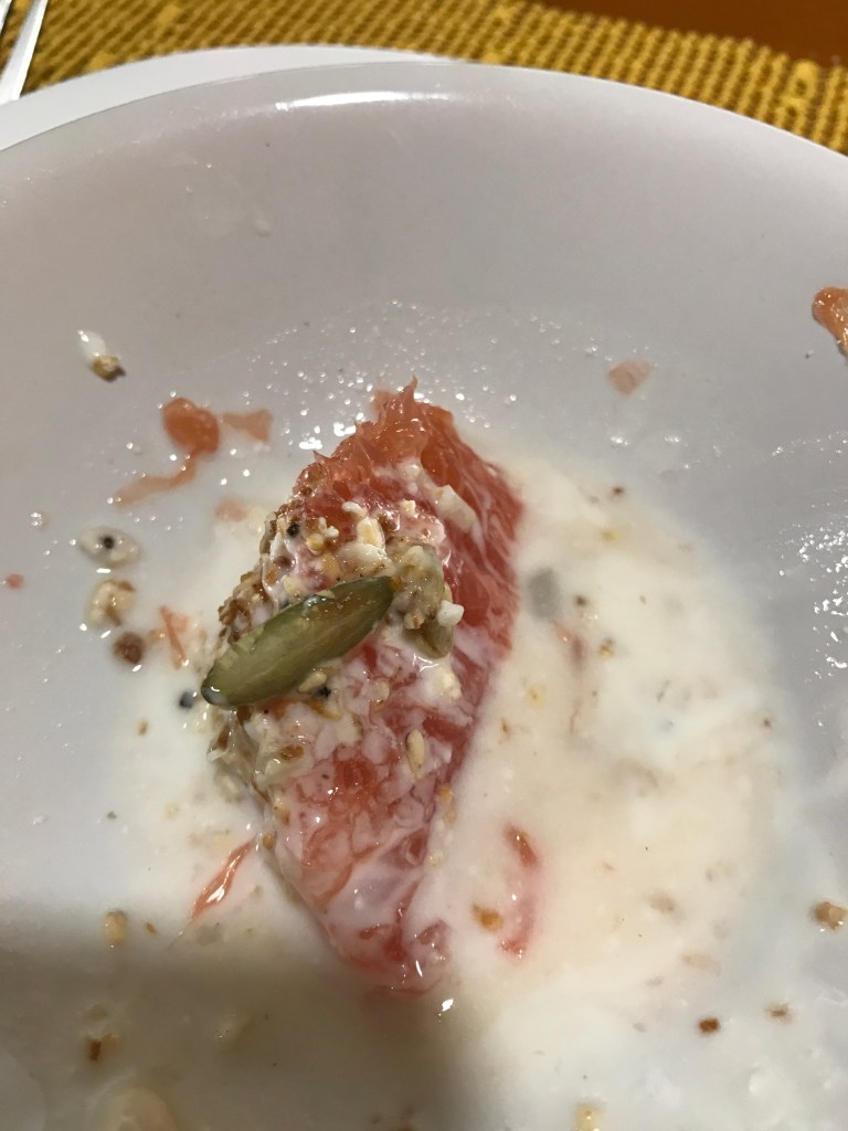 After the museum, we came back to the apartment to rest for an hour. We had dinner reservations at 5pm at Contramar which is one of the best restaurants in Mexico City (and for that matter, the world). However, as the afternoon wore on, I had second thoughts. I made this reservation three months ago, but somehow it just didn’t feel right today. First, it’s in Condesa which is at least a 30 minute Uber ride from where we are. Second, it’s expensive. Third, it’s all seafood which isn’t Kevin’s favorite. Fourth, it’s extremely elegant. I decided that Kevin and I needed a nice traditional meal so we went to El Cardenal here in the Historic Center. I’ve been told that no Mexico City experience is complete without a visit to El Cardenal. I have to say that service was great and the food was good, but I wouldn’t rush back. We had a squash blossom cheese appetizer. I had a delicious fruit salad. Kevin had steak with tortillas and some chipotle noodles. I also had a whole grilled octopus! With drinks and tax is was $45. A dinner like this in the States would have easily been $75. All in all, it was nice to sit and reminisce about our experiences here in Mexico.