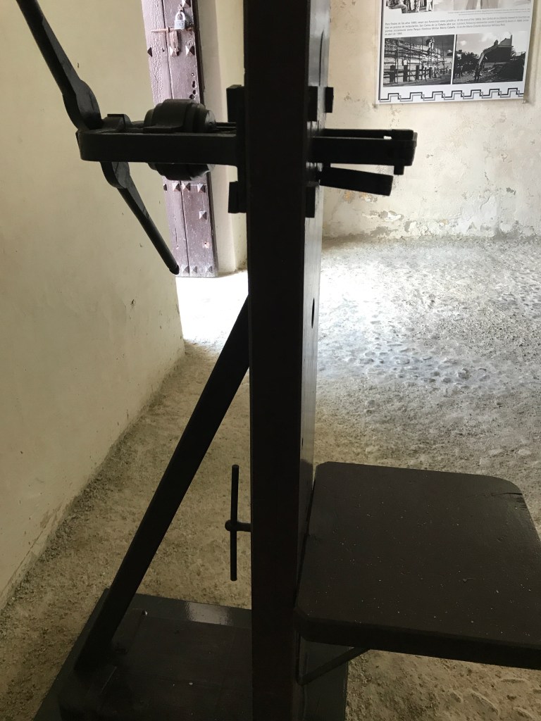Brian and I had several places we wanted to visit today so we left our Casa at 9:00am and walked first to the Castillo de San Salvador de La Punta, a fortress designed to protect the entrance to Havana Bay. From there, we grabbed a taxi for $3CUCs to take us through the underwater tunnel over to the UNESCO World Heritage Site known as Morro-Cabana. On this site are two large fortresses, the Castillo de los Tres Reyes del Morro and the Fortaleza de San Carlos de la Cabana. The views from these spectacular defensive properties over to the Havana city scape were impressive. We walked and read about the uses of the buildings. What especially interested me was the history of the Cabana as a military prison and also as the location of Ché Guevara’s offices after the January 1, 1959 Cuban Revolution. We saw many artifacts of war and prisoner torture. We also stopped by the cigar shoppe to purchase a few cigars to take back home. We also got some local coffee. Yes, Cuban cigars are famous, but NO they aren’t a deal here. They are super expensive! We were two of only about ten tourists at the site today. I was told that it could get quite crowded at night as there is a canon ceremony at 9pm every day of the week.