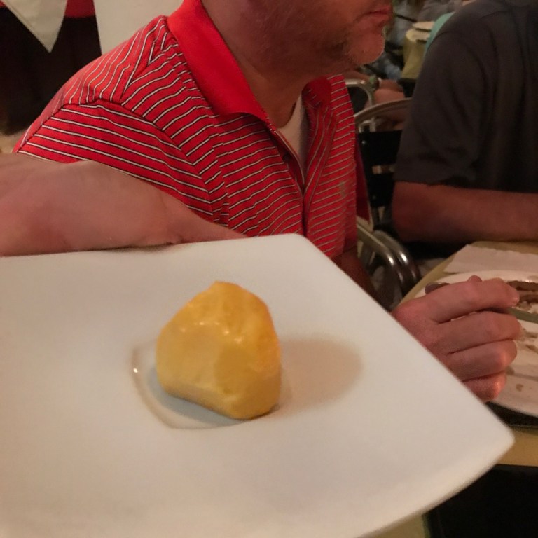 Dinner was poolside and it was delicious. We had fresh fish, steak fajitas, veggies, salad, rice and mashed potatoes with flan for dessert. The fish was fantastic! We tried a new vegetable that is unique to Costa Rica called the pejiballe. It’s like a potato. It was served in our salad. I liked it, but most of the others said they didn’t care for it. When I asked about it, our tour guide brought us a piece to share and said it was better with mayonnaise on it.