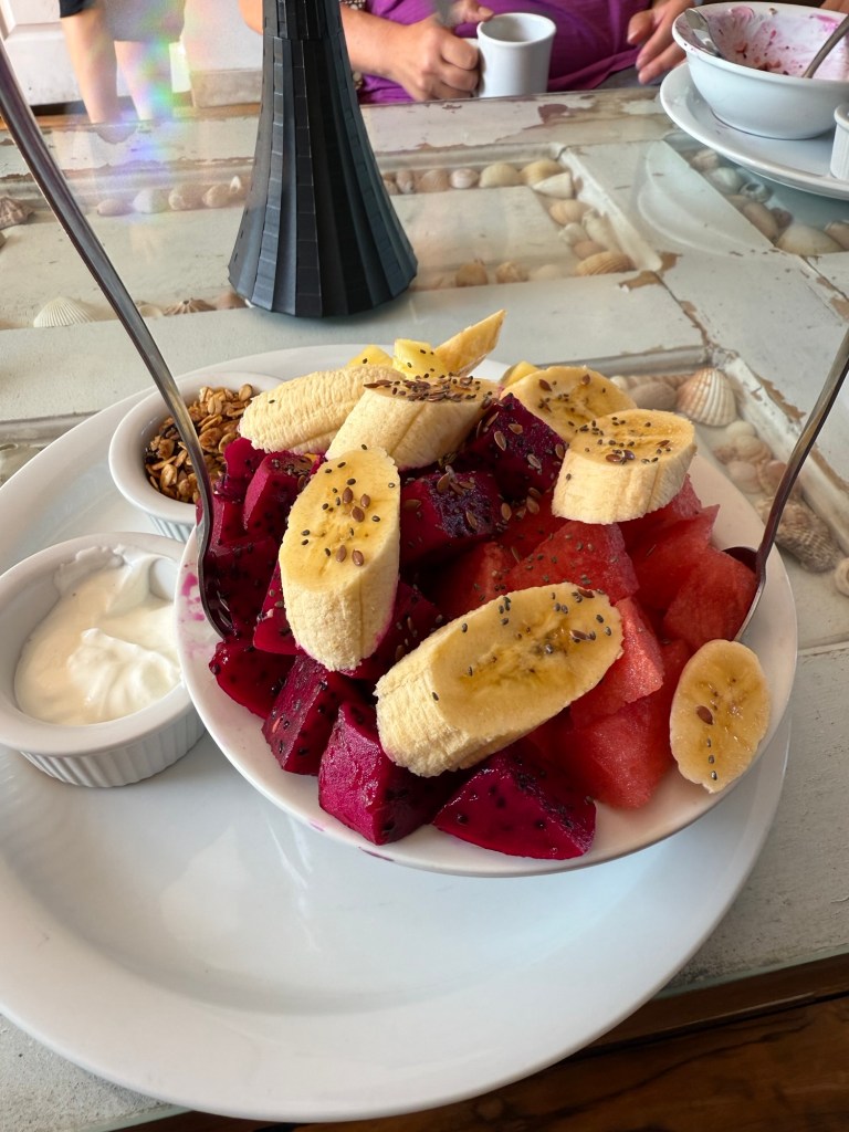 One of the best parts about traveling to Central America is the opportunity to eat simple, yet healthy, delicious and unprocessed foods all day every day. For breakfast, I chose the fruit bowl with Bulgarian yogurt and homemade granola. I LOVE to eat fruit! However, the amount of red dragon fruit, pineapple and watermelon in this fruit bowl was too much for even me to finish! It was so fresh and sweet! I did miss having papaya, but am hoping I will get to have some on another morning. For lunch, I had a buddha bowl and a papaya smoothie at the cafe. Dinner was shrimp and rice at the hotel with red dragon fruit juice. As is typical for me on these trips, I never felt hungry but managed to eat every single bite and sip that was placed in front of me! What a treat it is to eat locally!