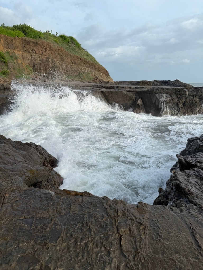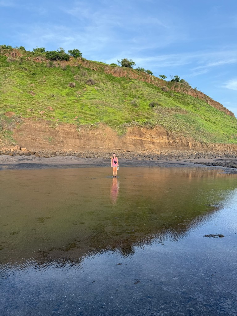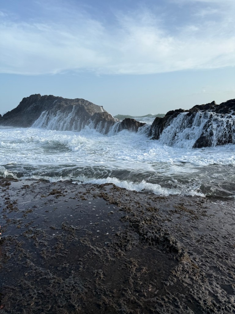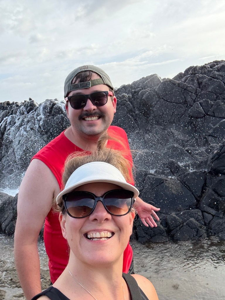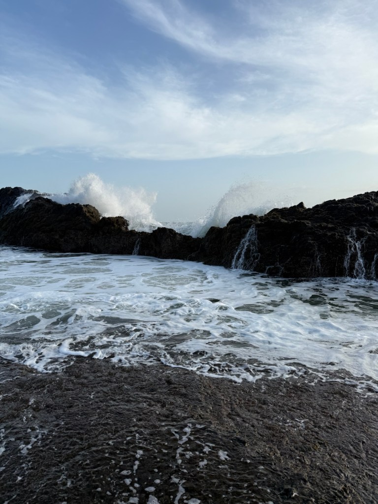 After a delicious lunch at the Surf Cafe followed by a quick siesta, we went with our guide to explore the tide pools right outside our hotel. Both Kevin and I thoroughly enjoyed this. The Pacific water is so warm right now that it almost felt like we were exploring hot springs. The waves crashed all around us as the tide went out. Our host’s children were with us and helped us to identify several sea creatures along the way. I’m not a beach person. The idea of sitting on a beach in the hot sun all day is NOT my idea of a relaxing vacation. Exploring tide pools in warm water with gentle breezes and powerful, rhythmic waves in the background is about as close to perfect as it gets, in my opinion!