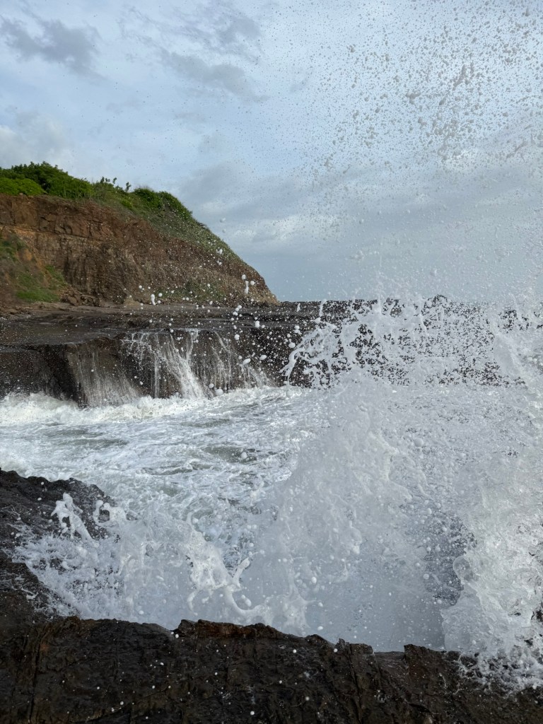 We are staying at a beachfront hotel called the Alive Beach House. It is a gorgeous 9 room hotel with a small oceanfront pool, yoga studio, restaurant and bar and beautifully decorated rooms. Our room is on the second floor and has a spectacular oceanfront balcony. Here are some pictures taking at or just in front of the hotel this morning.
