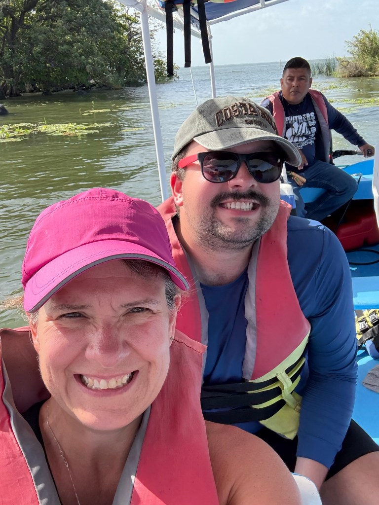 In the heat of the afternoon, we took off on our last Nica adventure. There are many things that travelers can see and do in Nicaragua that can also be done in Costa Rica. Things like hiking in the cloud forest, climbing up volcanoes, zip lining, kayaking, watching monkeys, searching for sloths, identifying colorful birds, and on and on. During my 4 student trips to Costa Rica I was blessed to have the opportunity to experience all of those things. Therefore, I didn’t feel the need to spend our final travel days exploring the rain forest like so many travelers to Nicaragua do. However, not one to miss an opportunity to enjoy local flora and fauna, we decide to take a private boat to the Isletas (little islands) of Granada to get a sneak peek at some of Nicaragua’s most famous natural wonders. So, before leaving this beautiful country, Kevin and I worked with a local man to take a boat out to Lake Nicaragua to see the islands. Our driver, Arial, picked us up at our hotel and arranged a private boat for just the two of us (plus his son Ariel, Jr.) with a local tour guide. With cloudy skies and nice breezes, we toured through 60 of Lake Nicaragua’s 365 mini islands. We saw houses owned by many different foreigners plus the house of the founder of Flor de Caña, the national rum.